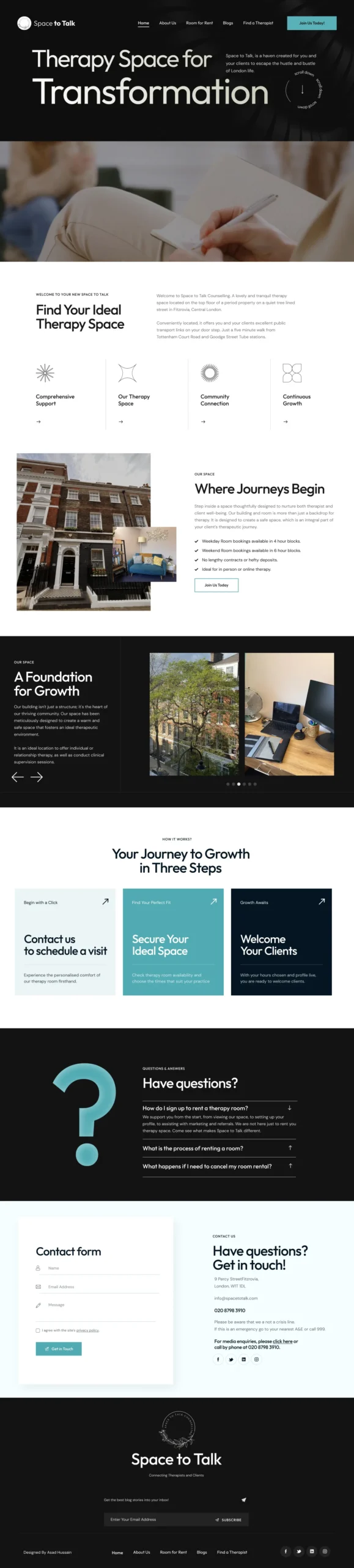 A warm, minimal therapy website concept designed to feel calm, safe, and approachable. The layout prioritizes clarity, emotional comfort, and intuitive navigation for first-time visitors.